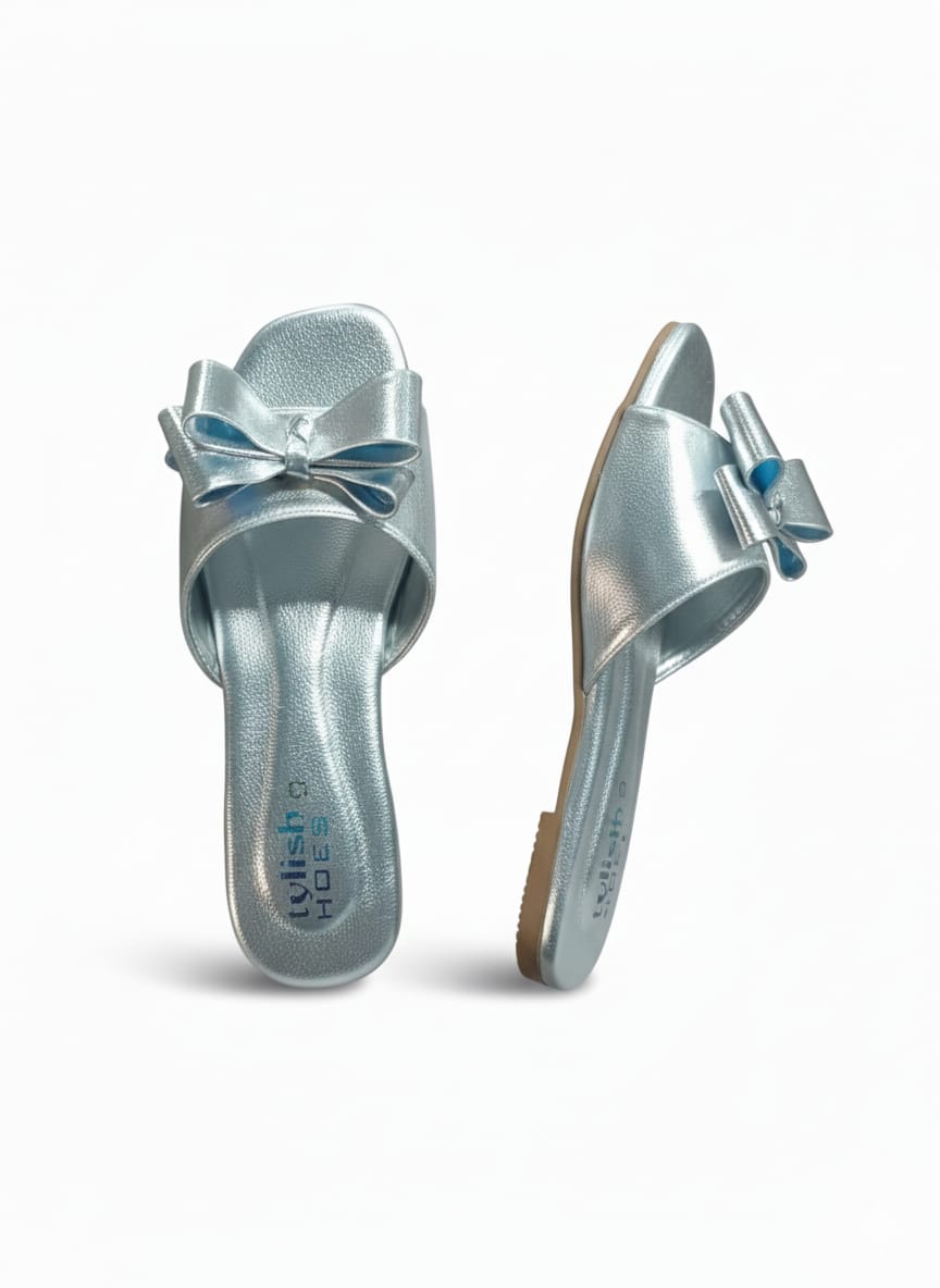 Decoration: Straps par silver shimmering texture hai aur center mein square-shaped crystal buckles lage hain jo inhein extra shine dete hain.